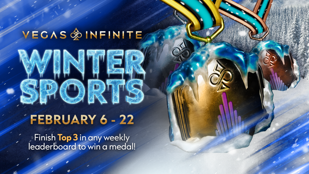 The Vegas Infinite Winter Games kick off on February 9th, bringing a new chance to compete and win. Rise through any of the weekly leaderboards and finish in the top three to earn a Gold, Silver, or Bronze medal! The competition runs until February 22nd, so get ready to jump in, play hard, and prove your skills in this winter showdown!